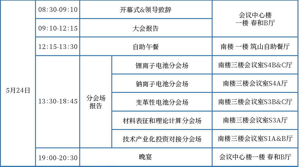 分会场设置及分会主席:锂离子电池(范修林/汤育欣),钠离子电池(夏晖/赵建庆),变革性电池(何平/杜春雨),材料表征和理论计算(王鸣生/张亮),技术产业化投资对接(郜明文/路密)。
